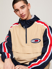 This bright popover exudes retro sporty style with its colour-blocked design, stripe detail on the sleeves and a prominent chest logo.
