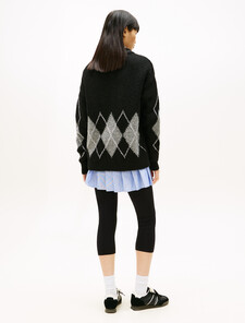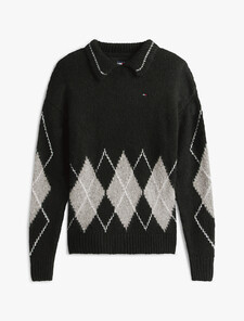 This slouchy polo jumper is knitted with alpaca, adding some playfully fluffy charm to its oversized argyle design.