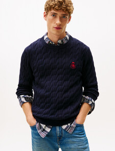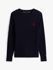 A timeless cable knit pattern brings rich texture to this crewneck pullover sweater in pure cotton, finished with signature Tommy Crest embroidery.