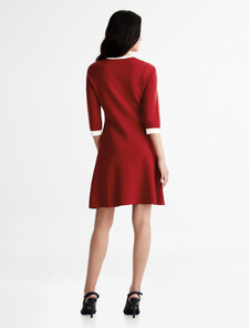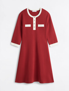 This stretch viscose dress flatters your silhouette with a fitted top and flared mini skirt. The contrasting henley collar adds a dash of elegance, getting you instantly ready for festive get-togethers.