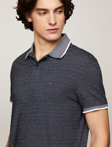 Our essential cotton pique polo shirt in a comfortable regular fit features a new pattern for a touch of sophistication.