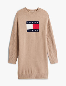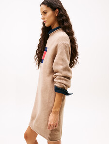 Stay cosy on chilly days in this relaxed-fit mini jumper dress, featuring a standout intarsia Tommy badge on the front.