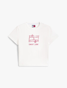 The cotton t-shirt features a bold Tommy Star graphic print with a high-shine finish, adding glitzy glam to your laid-back styling.