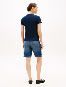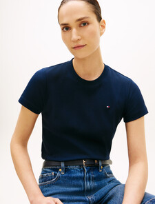 這款圓領T恤選以彈性十足的棉質混紡打造亞洲版型設計,胸前飾有旗幟刺繡,展現低調的品牌格調。