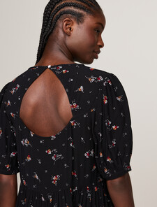 這款適合早午餐的洋裝是個時尚之選,主打分層裙襬設計,後背有鈕扣開合的鑲空設計。