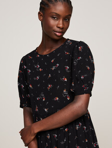 分層花朵圖案及膝洋裝