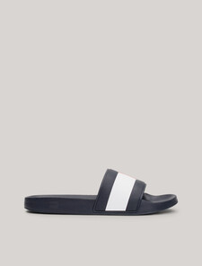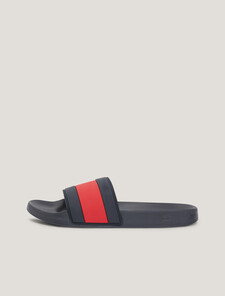 這款Tommy Hilfiger旗幟標誌泳池拖主打拼色設計,鞋面以天然橡膠製造。