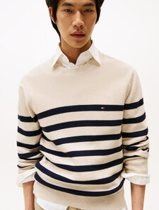 這款圓領毛衣饒富紋理感,視覺效果鮮明矚目,標準版型流露簡約美感。