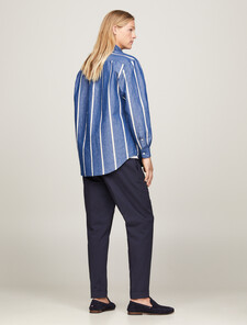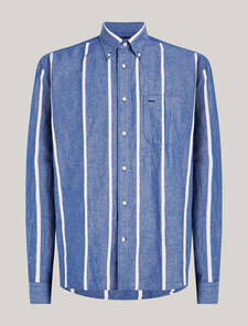 這款連結領襯衫採用精緻的條紋和輕盈的棉麻混紡面料,非常適合度假和夏季花園派對。