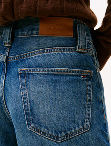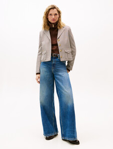 這款牛仔褲採用高腰寬筒剪裁,別具70年代的復古格調。