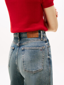 這款再生棉牛仔褲帶有洗水效果,採用高腰寬鬆版型,為現代造型注入復古氣息。