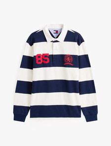 這款橄欖球衫採用純棉平紋針織料製成,寬版剪裁輕鬆百搭,為運動休閒穿搭增添學院風格。