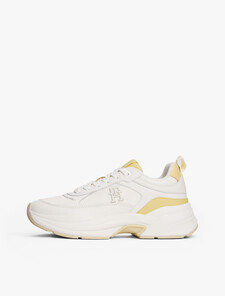 These retro-inspired panelled running trainers in textured leather are given a contemporary twist with an undulating design on the chunky soles.